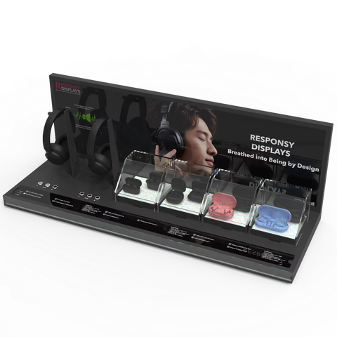 Affichage acrylique d'un mètre pour écouteurs Bluetooth avec cache-poussière et sections modulaires