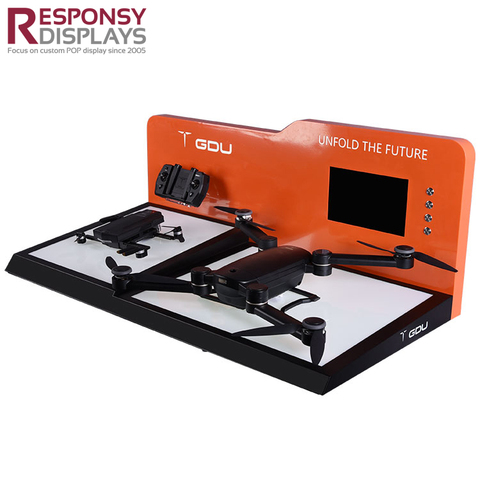 Акриловый дисплей столешницы с подсветкой задней панели для выставки серии дронов в розницу электроники